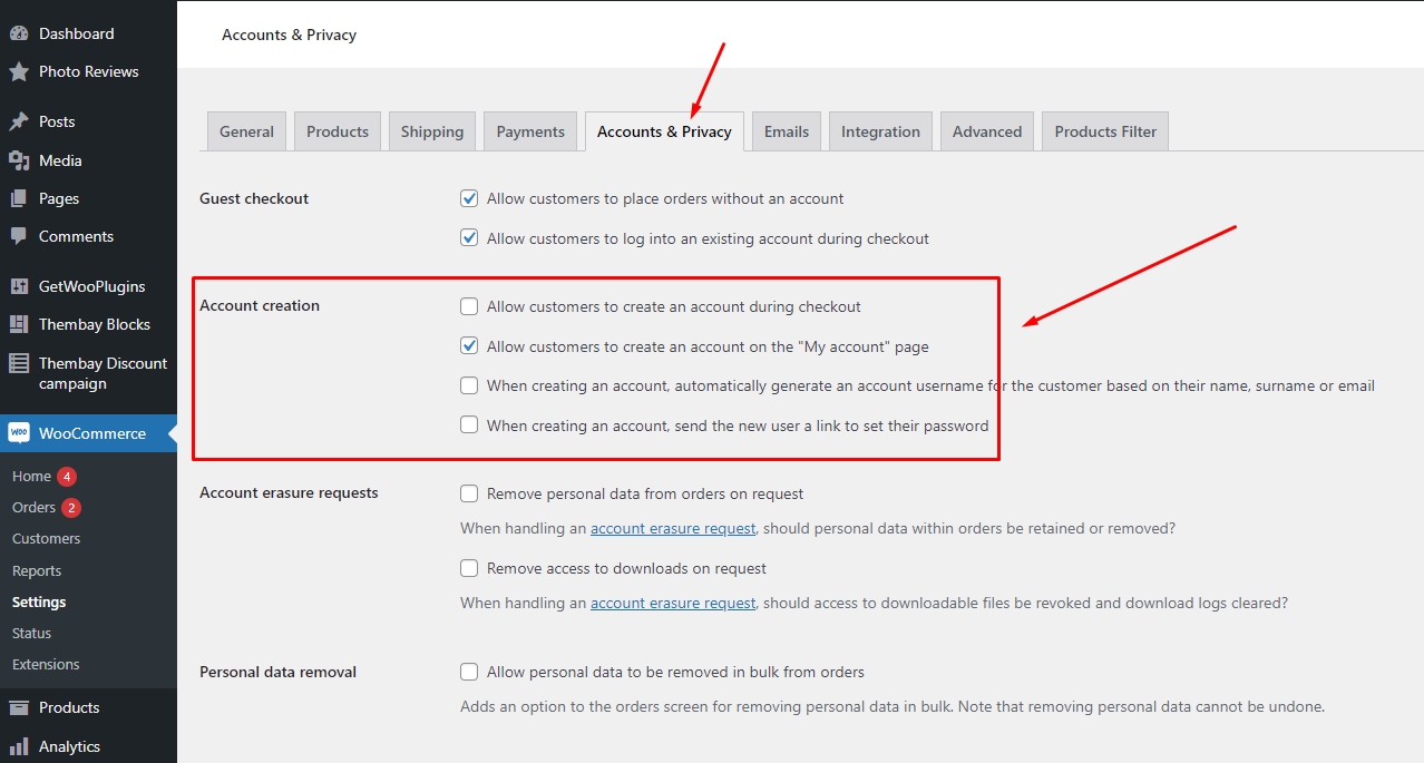 Open Account Tab In the Registration section, make sure the" Enable registration on the "Checkout" page" and “Enable registration on the “My Account” page” options are checked.