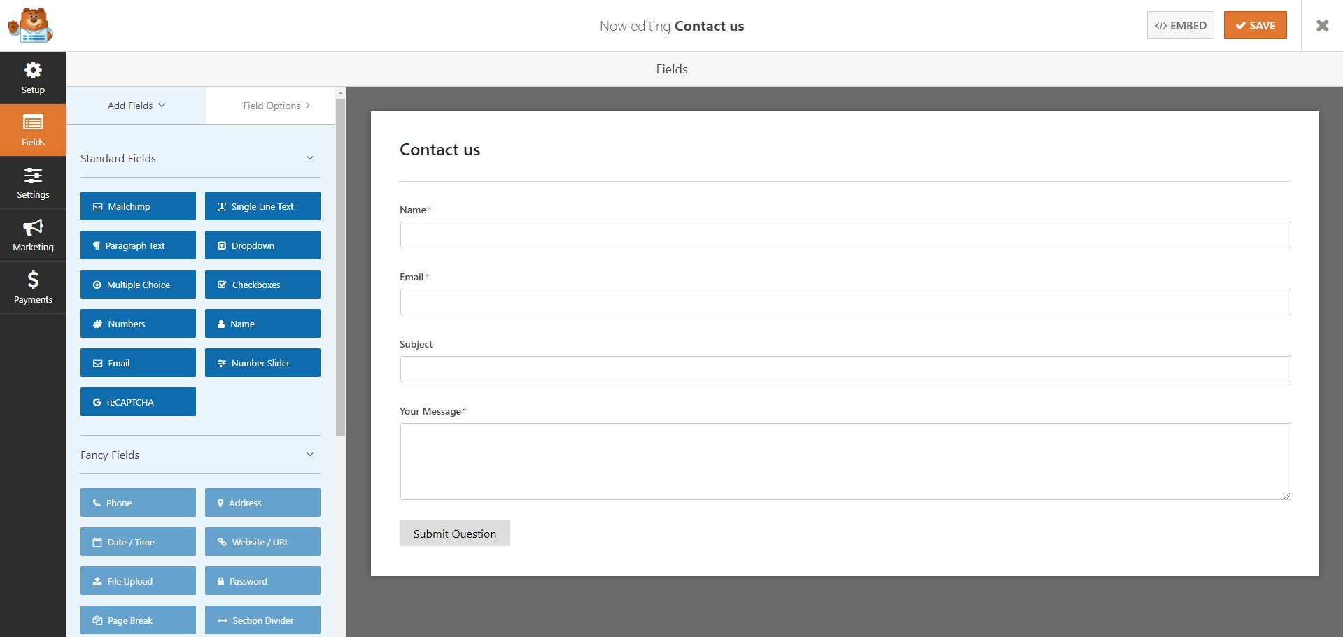 Use this plugin to make the contact form on the contact page. Navigate to WPForms - All Forms, there is a form named Contact us, if you want to create a new form, click on Add New button.