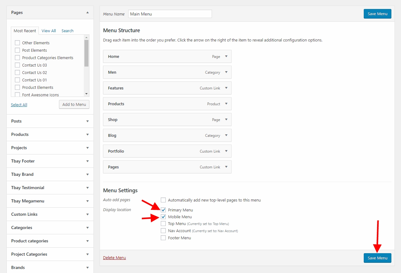 Step 5 - Click the Save Menu button once you've added all the menu items you want. Your custom menu has now been saved.
