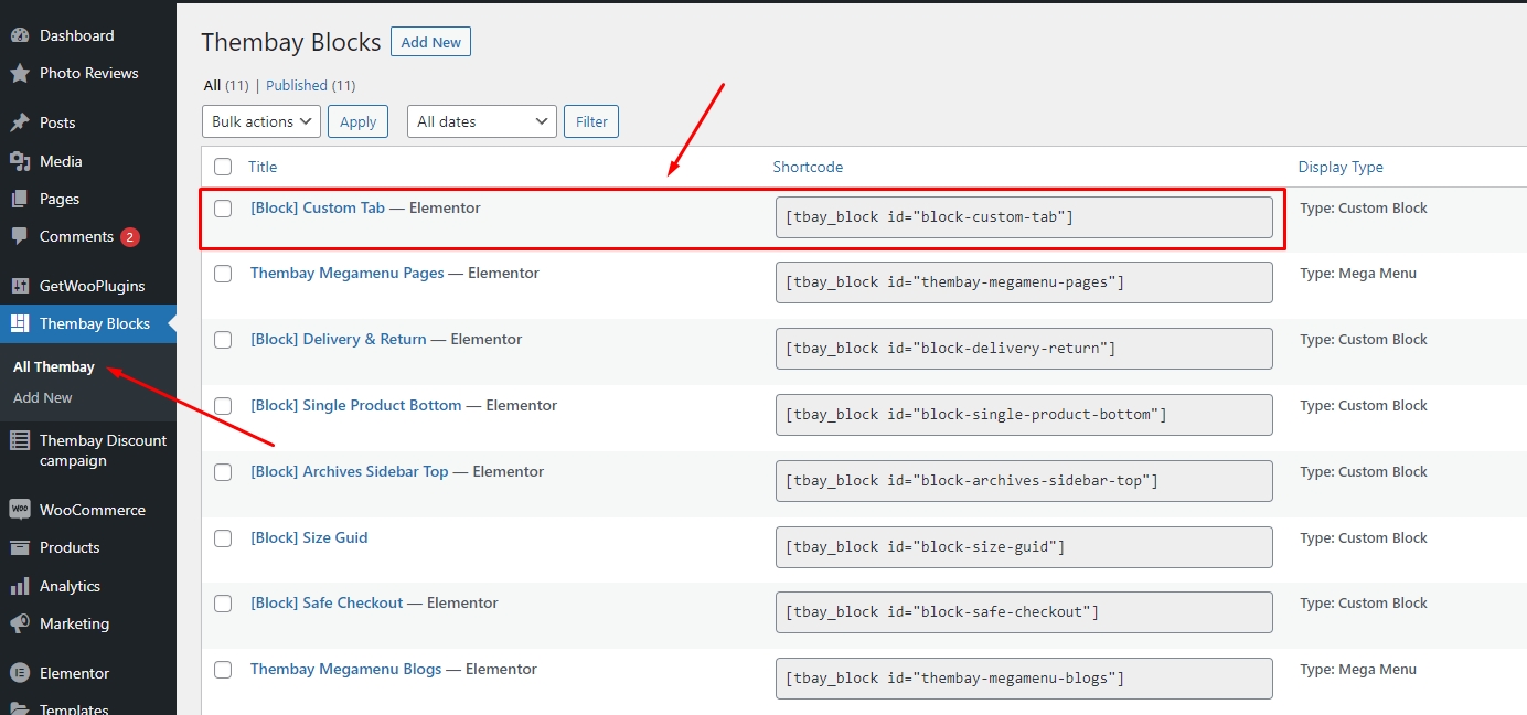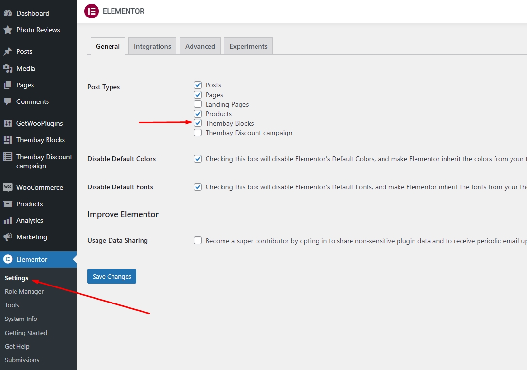 Go to Elementor > Settings > General > Post Types = Thembay Blocks