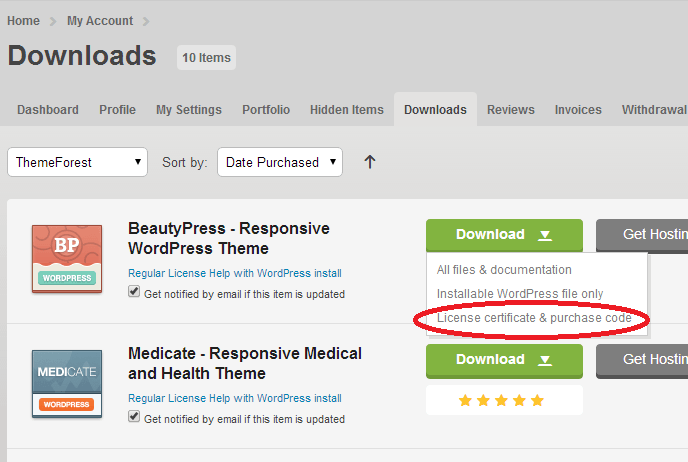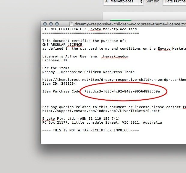 How to find your ThemeForest Item Purchase Code
