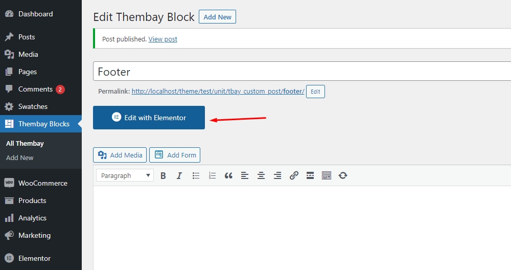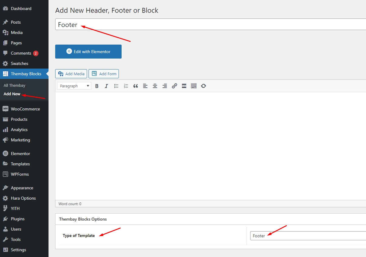 Choose Thembay Blocks > Add New > Type of Template = Footer