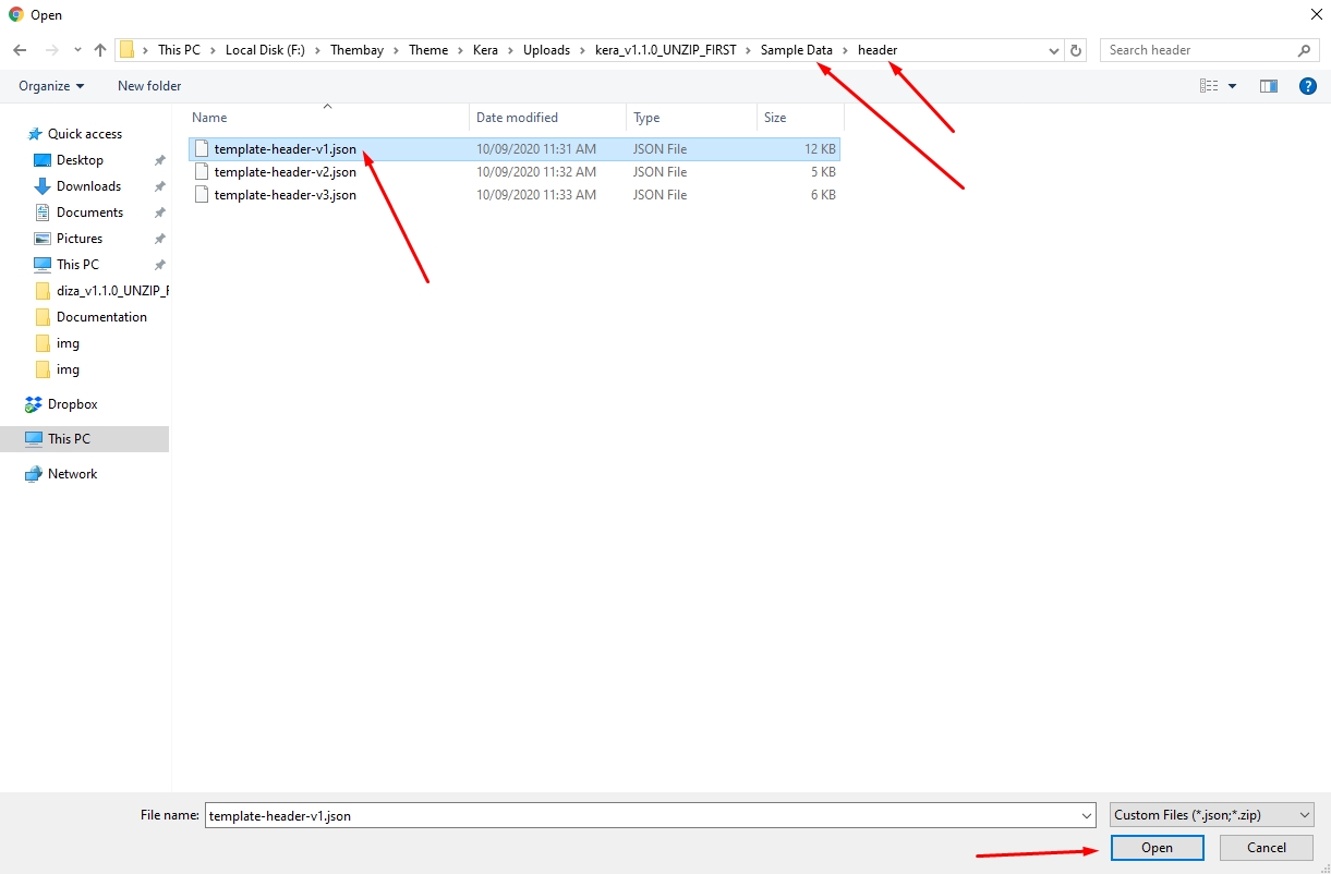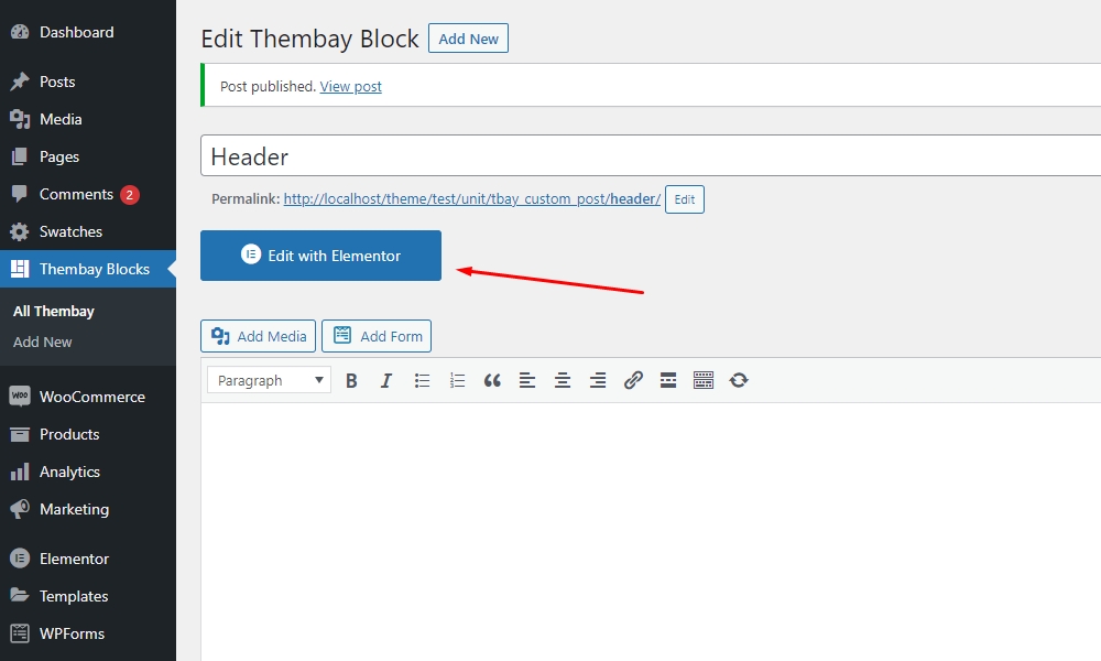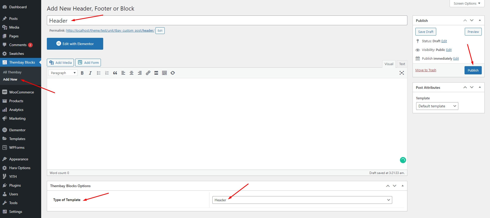 Choose Thembay Blocks > Add New > Type of Template = Header
