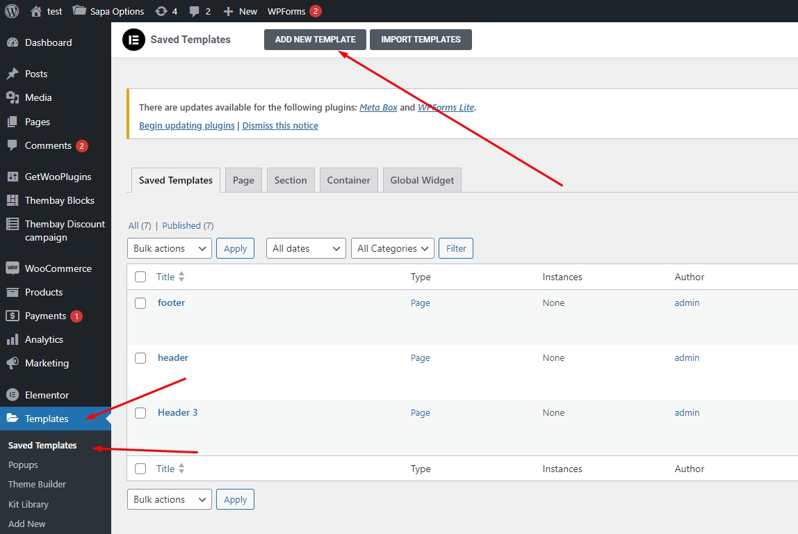 Step 2 - Go to Templates > Saved Templates > Add New Template