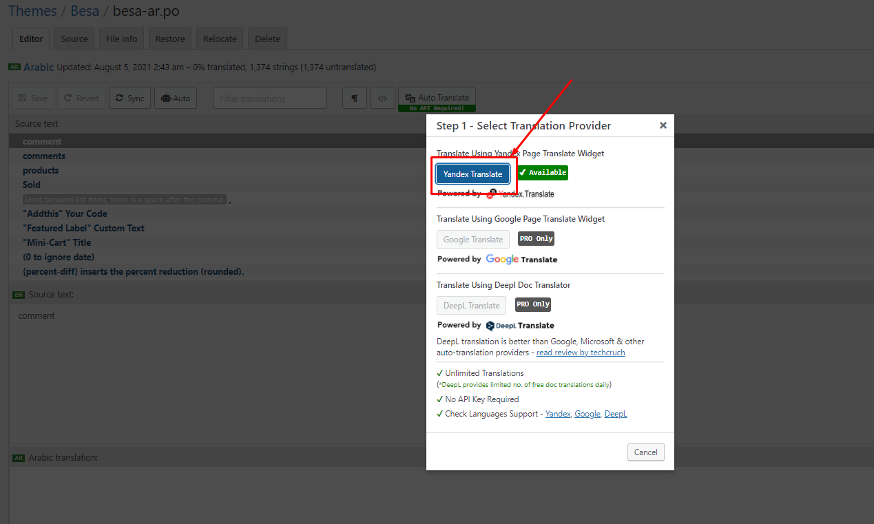 5. Automatic Translate: Install the plugin "Automatic Translate Addon For Loco Translate"