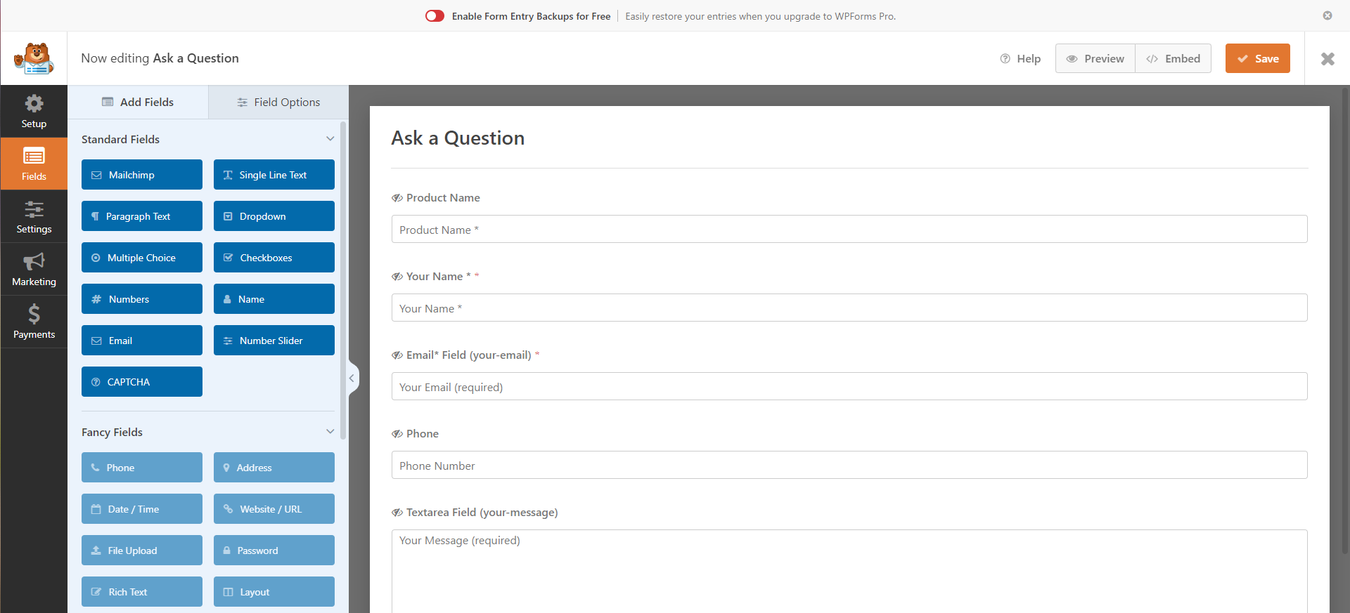 **Step1: Import the contact form "Ask a Question"**